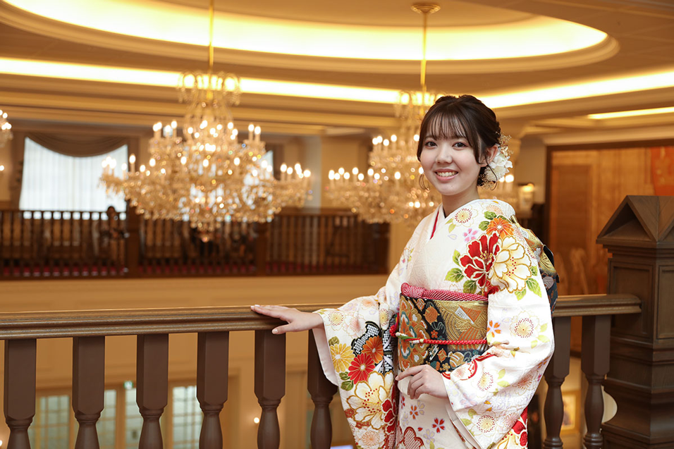 振袖前撮写真:宝塚ホテル写真室前にて撮影